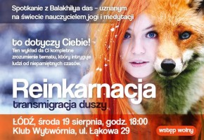 W środę 19 sierpnia o godzinie 18:00 w łódzkim Klubie Wytwórnia odbędzie się spotkanie z uznanym na świecie autorytetem w dziedzinie jogi i medytacji – Balakhilya das. Tematem wykładu nauczyciela jogi będzie: „Reinkarnacja – transmigracja duszy”.